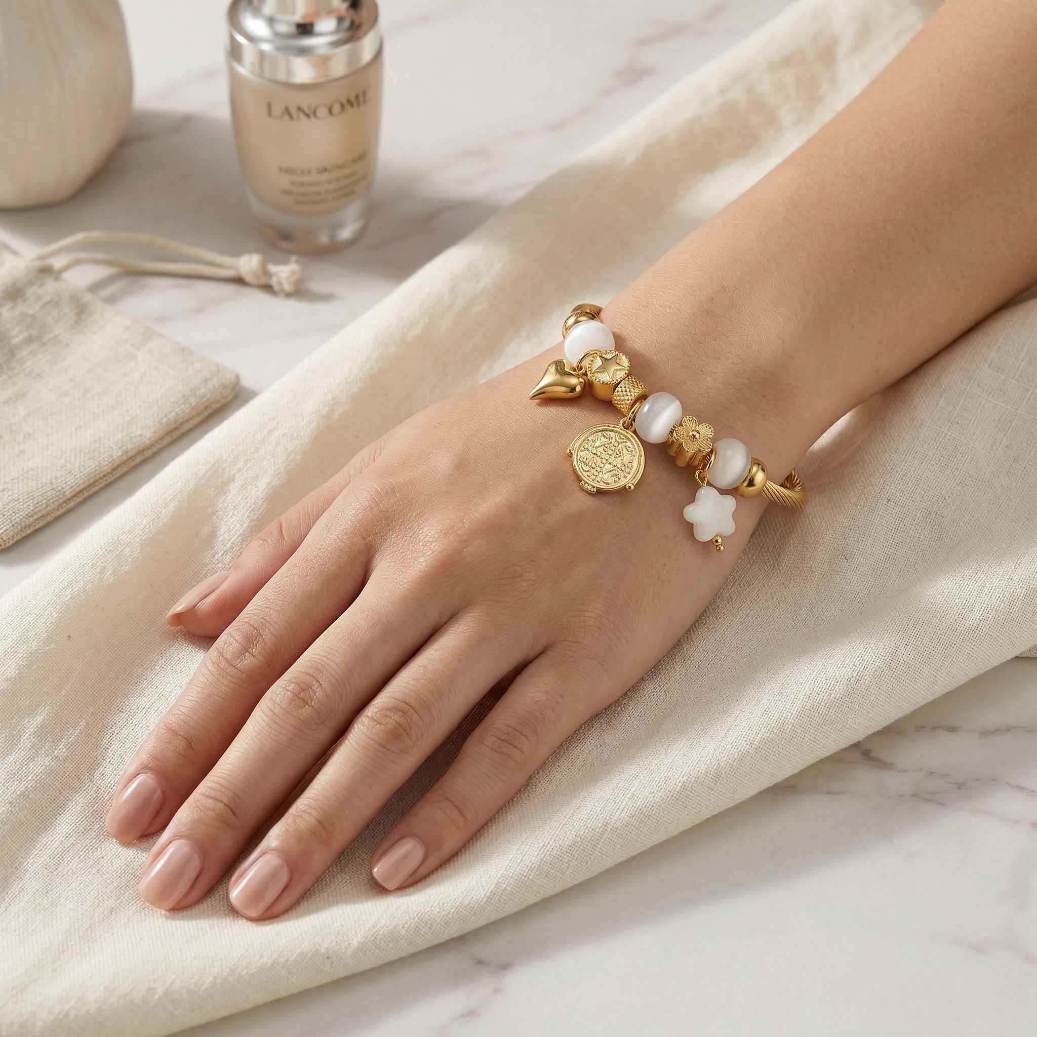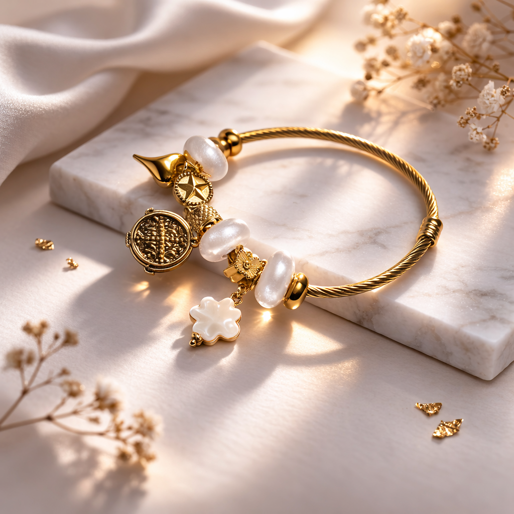 Κομψό επιχρυσωμένο βραχιόλι τύπου Pandora από ανοξείδωτο ατσάλι